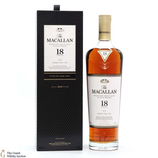 This annual release of The Macallan's popular 18 Year Old Sherry Oak is matured exclusively in sherry seasoned casks, built from both Spanish and American oak, providing a beautifully dark flavour with rich aromas.