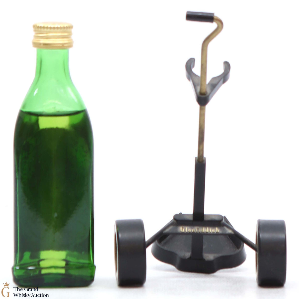 This miniature 5cl bottling of Glenfiddich comes with a mini golf trolly stand!