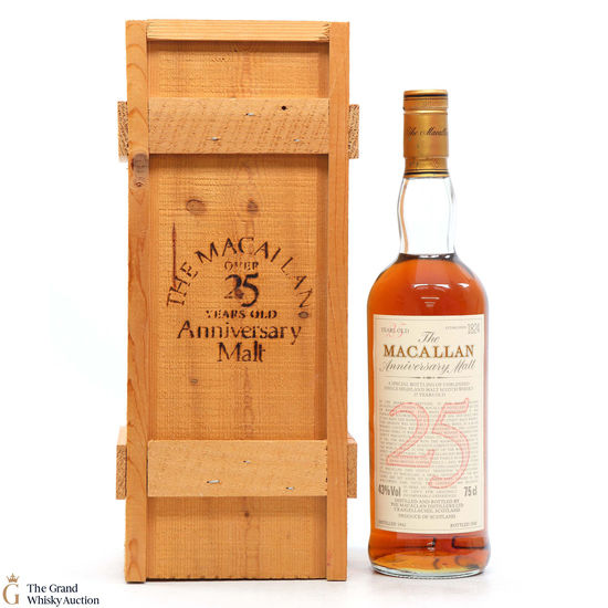 This is an incredibly rare 25 year old Speyside single malt. It was distilled at The Macallan in 1962. It was bottled in 1988 for the highly decorated Anniversary Malt range. This a 75cl bottle.