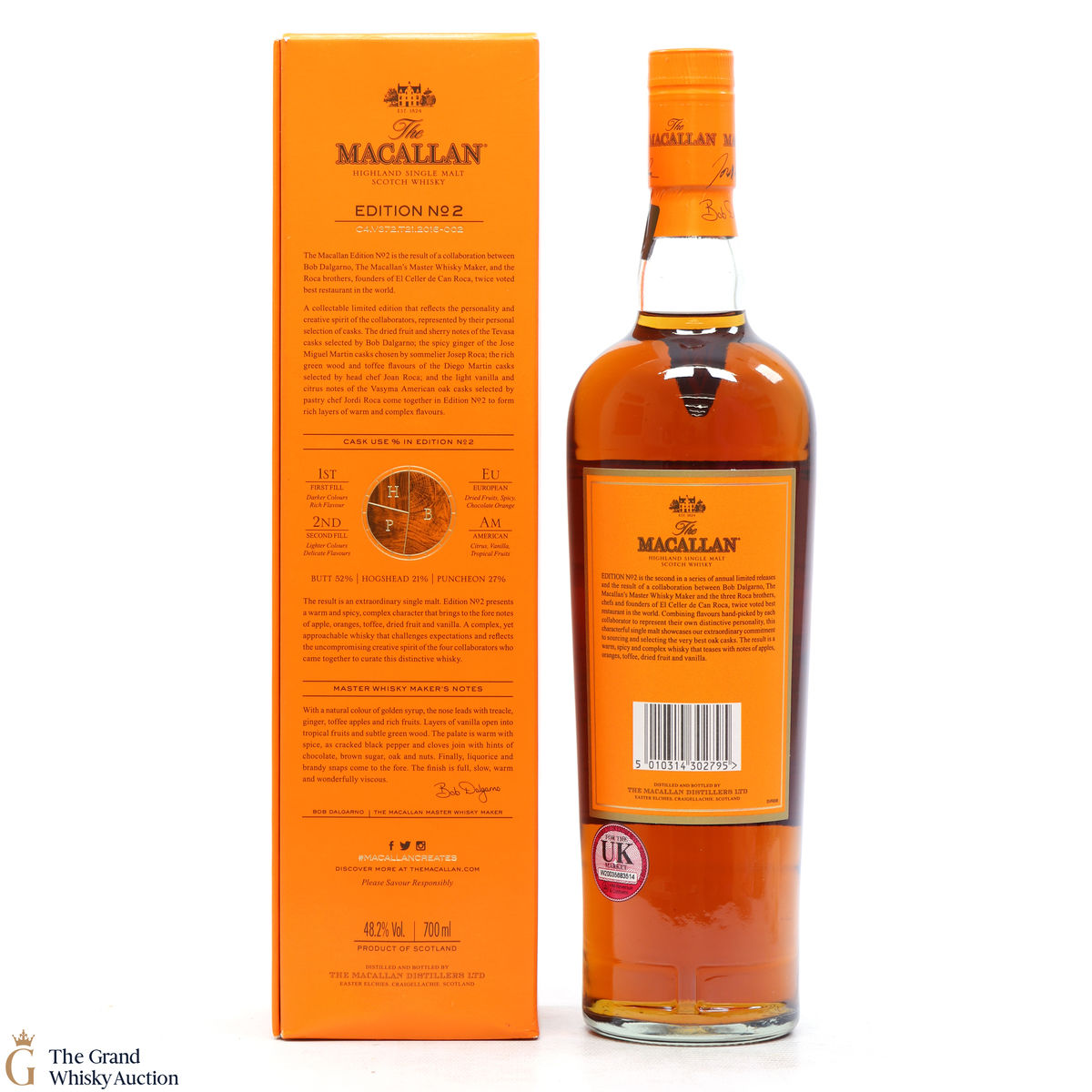 This is the second release from the Macallan Edition series. Edition No.2 is a collaboration between Macallan's master blender Bob Delgarno and legendary Spanish chefs Joan, Josep and Jordi Roca. The Rocas are the three brothers behind El Celler de Can Roca (named Best Restaurant in the World twice by Restaurant magazine). This single malt was drawn from a combination of sherry puncheons, butts and refill hogsheads.