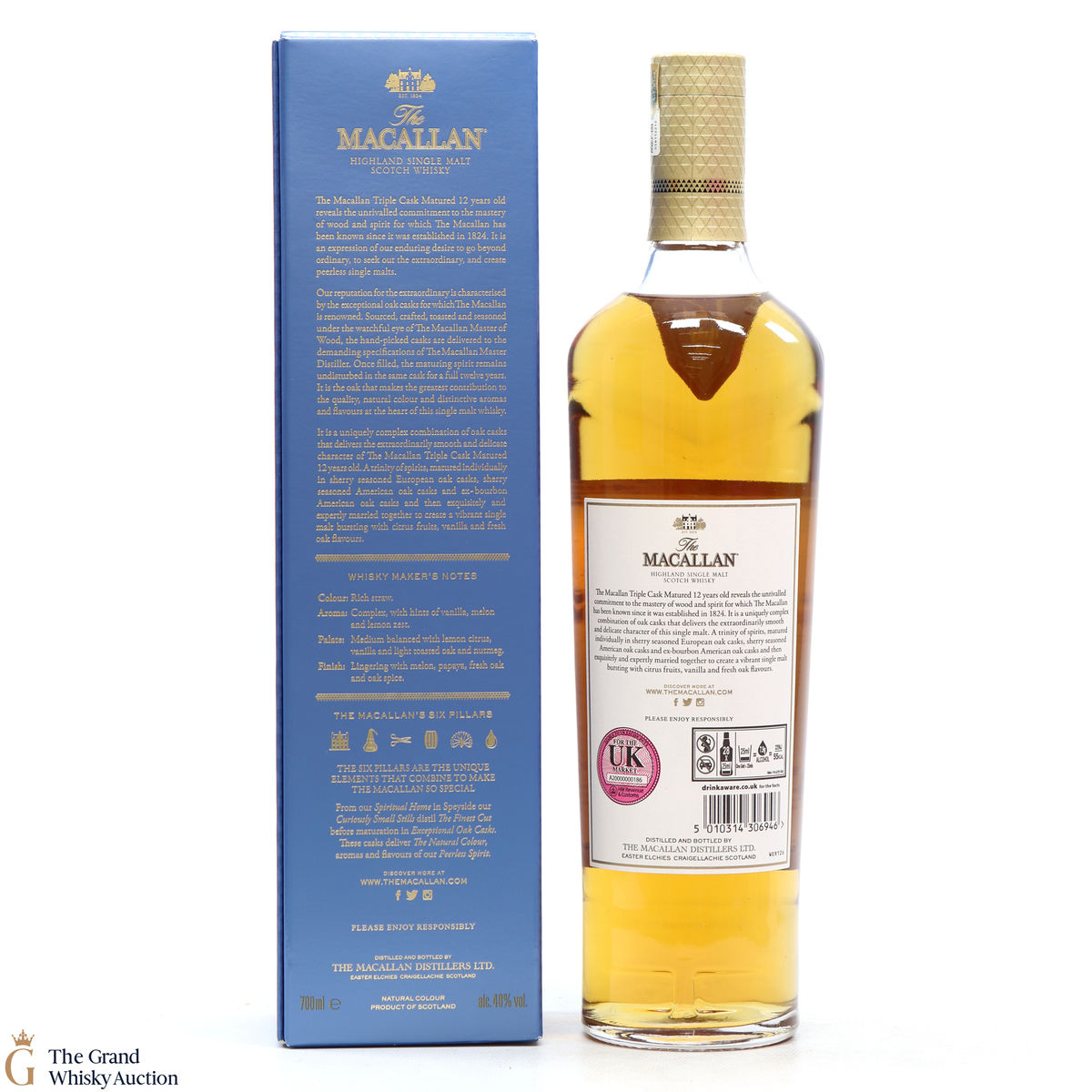 The 12 year old single malt was matured for 12 years and drawn from a combination of European sherry seasoned casks, American sherry seasoned casks and American ex-bourbon casks. It is part of Macallan's Triple Cask range which was launched in 2018, taking the place of the Fine Oak range.
