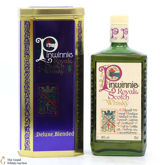 This is an eye-catching older style bottling of Pinwinnie Royale Deluxe Blended Whisky. It is very elegantly packaged with an iconic presentation tin. It is estimated that this botting is from the 1980s - unfortunately it is now discontinued.