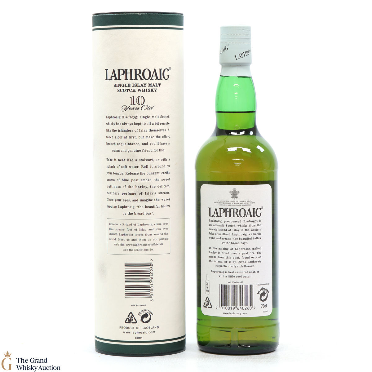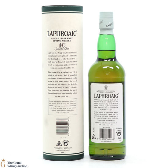 A 70cl of the medicinal 10 year old from Islay's bestselling distillery, Laphroaig. In making Laphroaig, malted barley is dried over a peat fire. The smoke from this peat, found only on Islay, gives Laphroaig its particularly rich flavour.