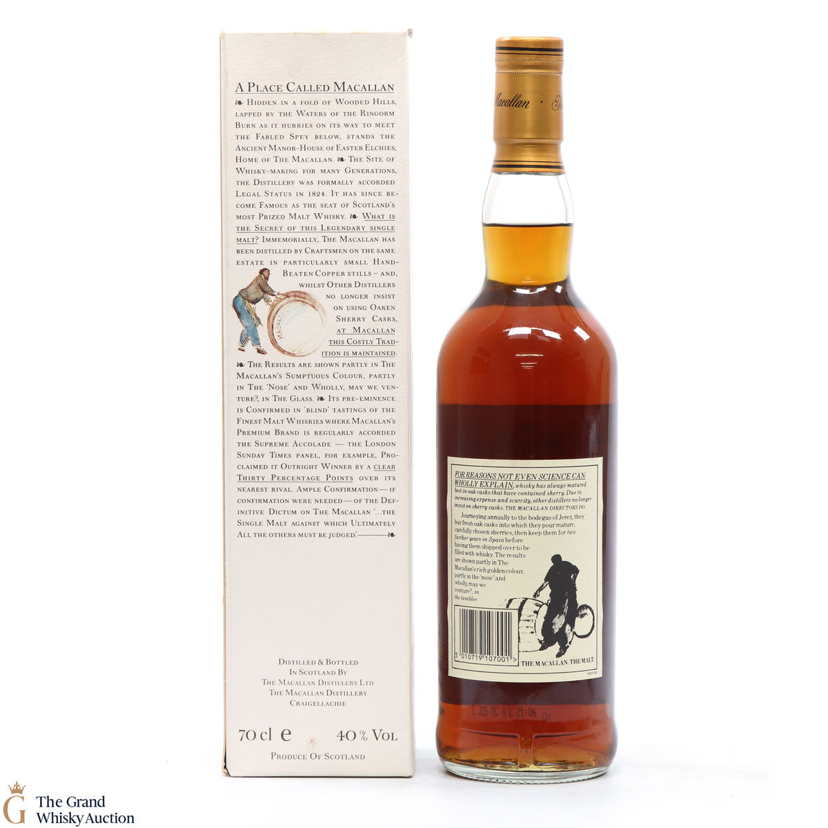 This is an old-style presentation of Macallan 10 Year old was bottled in the 1990's. This classic Speyside malt whisky matured in sherry oak casks from Jerez. Very collectable.