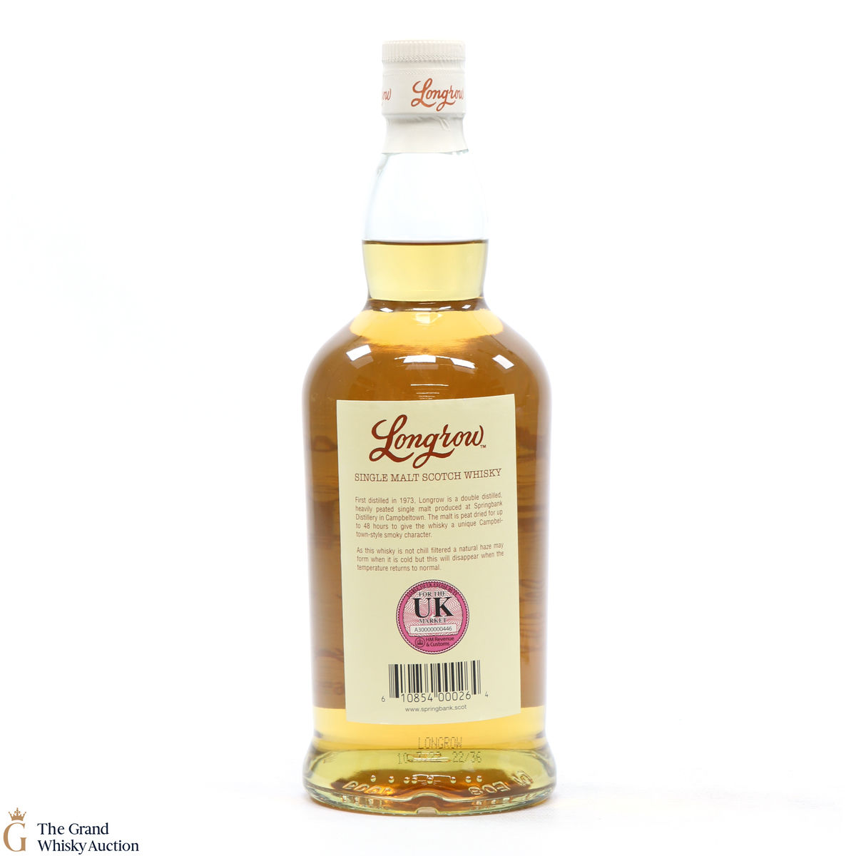 A bottle of Longrow Peated - This is essentially the awesome Longrow C.V. bottling in new packaging, which used to be Longrow's entry-level whisky. Longrow is Springbank's heavily peated whisky - this is a no age statement expression.