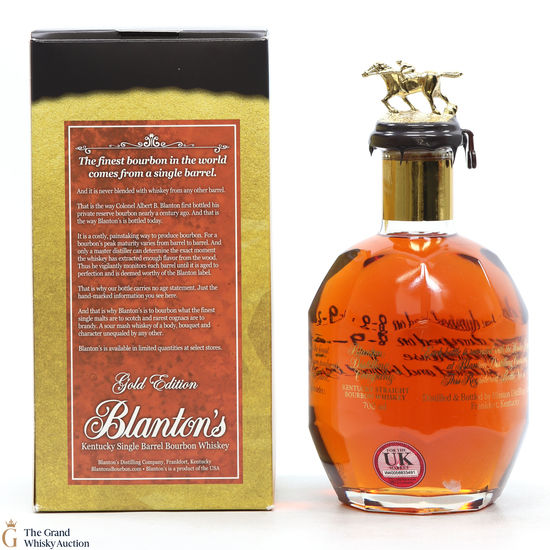 PLEASE NOTE: The wax seal on Blanton's bottles are prone to cracking in transit due to their design. Therefore, as stated in our T&C’s, we do not and will not accept liability should the seal be breached, broken, split or leak in transit. Additionally, please know due to the design of the internal cardboard packaging that surrounds the top of the bottles, it too may be torn. By bidding on this lot you have understood this to be true. Insurance is for complete breakage or loss in transit only.