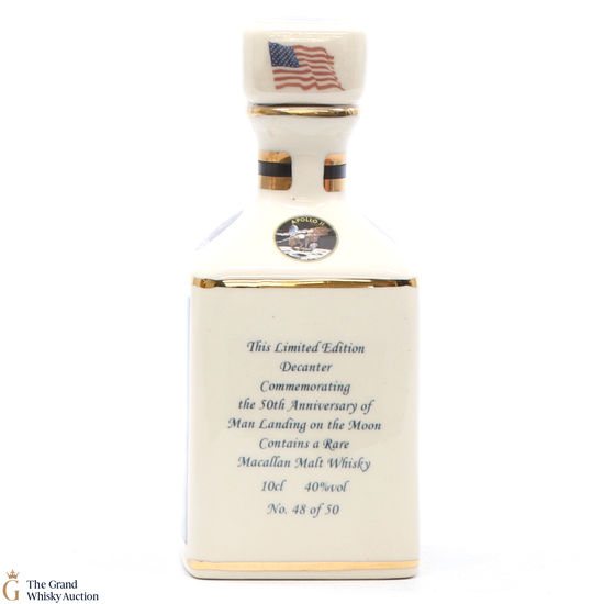 A mini decanter commemorating the 50th anniversary of Man Landing on the moon, Neil Armstrong. Filled with Macallan, this is one of 50 bottles released.