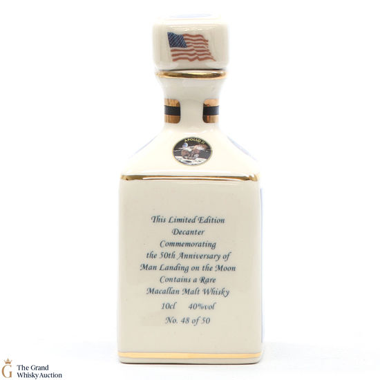 A mini decanter commemorating the 50th anniversary of Man Landing on the moon, Edwin (Buzz) Aldrin. Filled with Macallan, this is one of 50 bottles released.