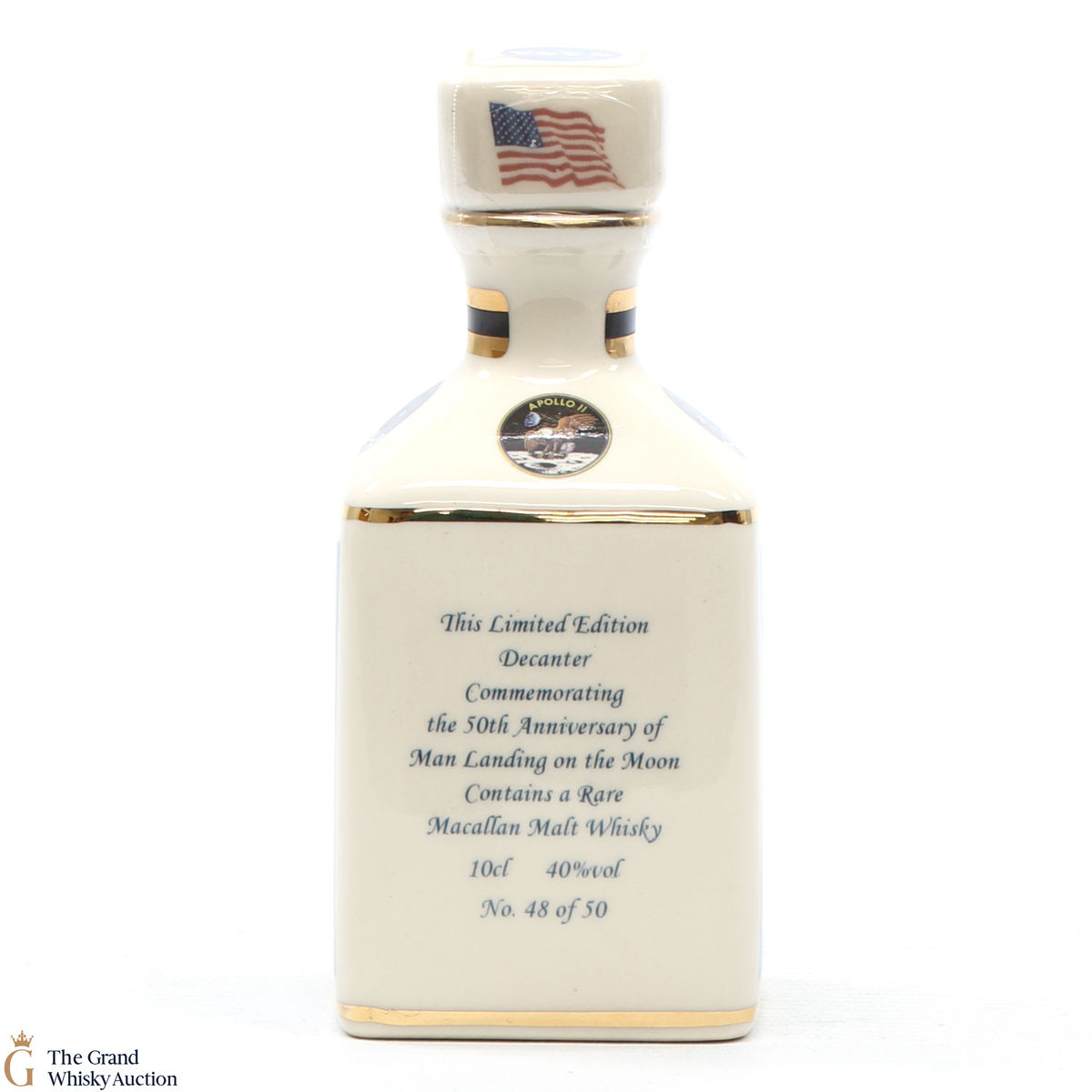 A mini decanter commemorating the 50th anniversary of Man Landing on the moon, Michael Collins. Filled with Macallan, this is one of 50 bottles released.