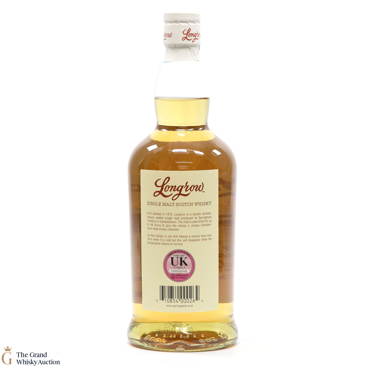 A bottle of Longrow Peated - This is essentially the awesome Longrow C.V. bottling in new packaging, which used to be Longrow's entry-level whisky. Longrow is Springbank's heavily peated whisky - this is a no age statement expression.