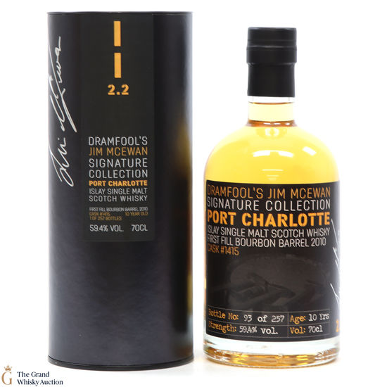 Distilled at Port Charlotte Distillery in Islay, this single malt underwent maturation in first fill bourbon barrel #1415 for 10 years until it was bottled as part of Jim McEwan's Signature Collection. This is one of only 257 bottles produced.