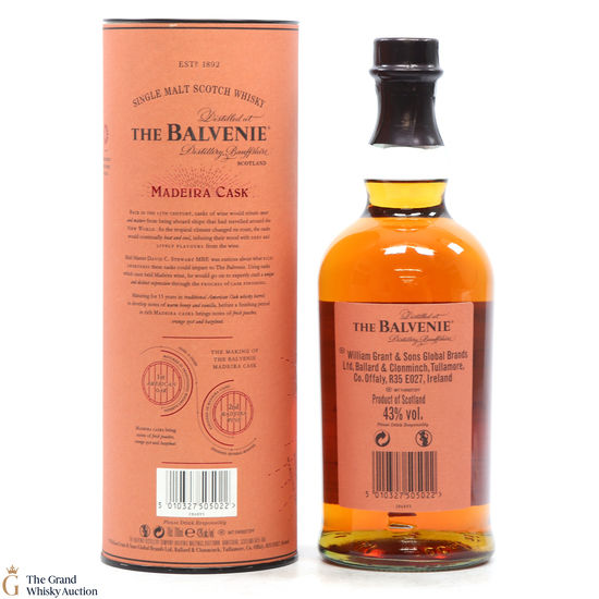 This release is from the Speyside distillery, Balvenie. The initial cask maturation took place in American Oak barrels before being finished in Madeira casks for several months.