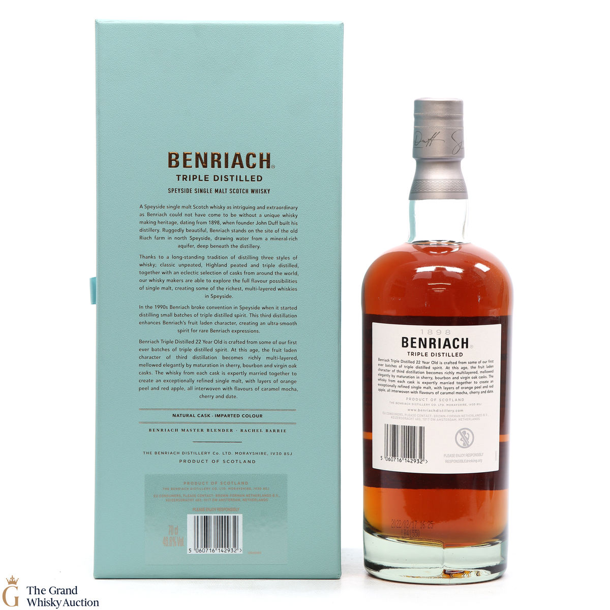 A 22-year-old single malt from the BenRiach distillery, triple distilled in Sherry, Bourbon and Virgin Oak casks that were then married together.
