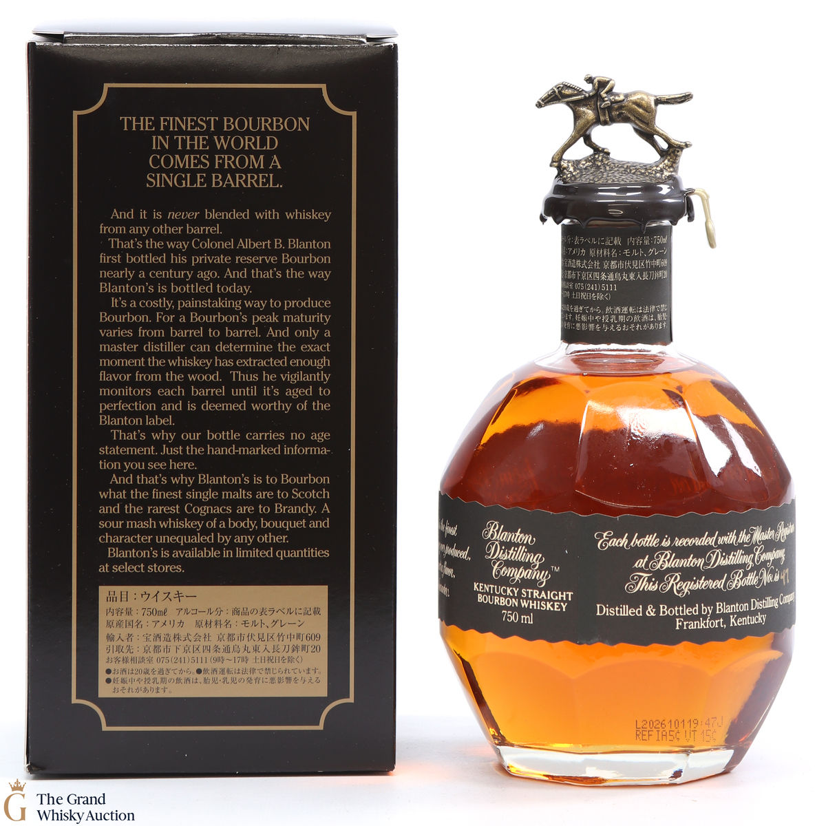 PLEASE NOTE: The wax seal on Blanton's bottles are prone to cracking in transit due to their design. Therefore, as stated in our T&C’s, we do not and will not accept liability should the seal be breached, broken, split or leak in transit. Additionally, please know due to the design of the internal cardboard packaging that surrounds the top of the bottles, it too may be torn. By bidding on this lot you have understood this to be true. Insurance is for complete breakage or loss in transit only.