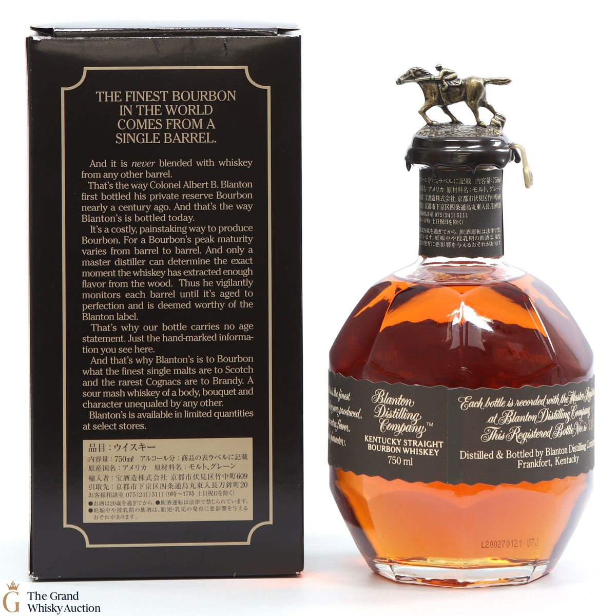 PLEASE NOTE: The wax seal on Blanton's bottles are prone to cracking in transit due to their design. Therefore, as stated in our T&C’s, we do not and will not accept liability should the seal be breached, broken, split or leak in transit. Additionally, please know due to the design of the internal cardboard packaging that surrounds the top of the bottles, it too may be torn. By bidding on this lot you have understood this to be true. Insurance is for complete breakage or loss in transit only.
