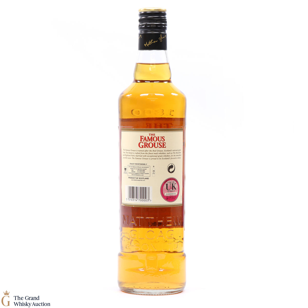 Famous Grouse blended scotch whisky was first produced by Matthew Gloag & Son Ltd in 1896, and is currently produced and owned by The Edrington Group.