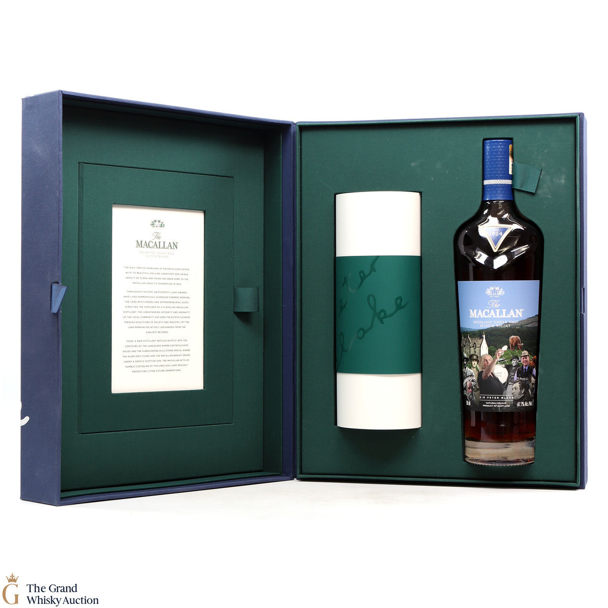 Along with this unique bottle of whisky is a scroll of artwork showing Sir Peter Blake's distinct style and a certificate detailing the history and heritage on which Sir Peter's art was based. There is also a piece of tracing paper which provides information on each character from The Macallan's history that Sir Peter chose to include in his art.