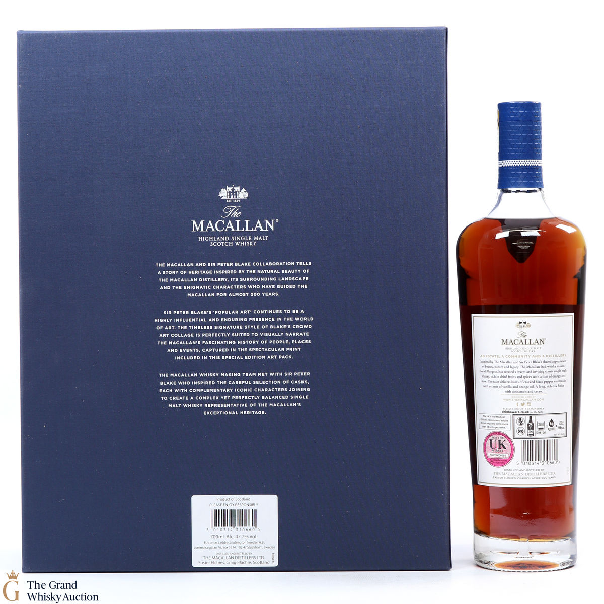 Part of The Anecdotes of Ages Collection, this is an extraordinary art and whisky collaboration with Sir Peter Blake. Being the third collaboration between the Macallan Distillery and Sir Peter Blake, this single malt was created to commemorate Sir Peter Blake's visit to The Macallan Estate. An Estate, a Community and a Distillery tells the story of some of the colourful characters from the distilleries past and present and features a label designed by Sir Peter Blake.