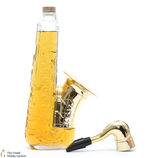 A Saxophone shaped decanter of whisky by Suntory filled with 12-Year-Old whisky.