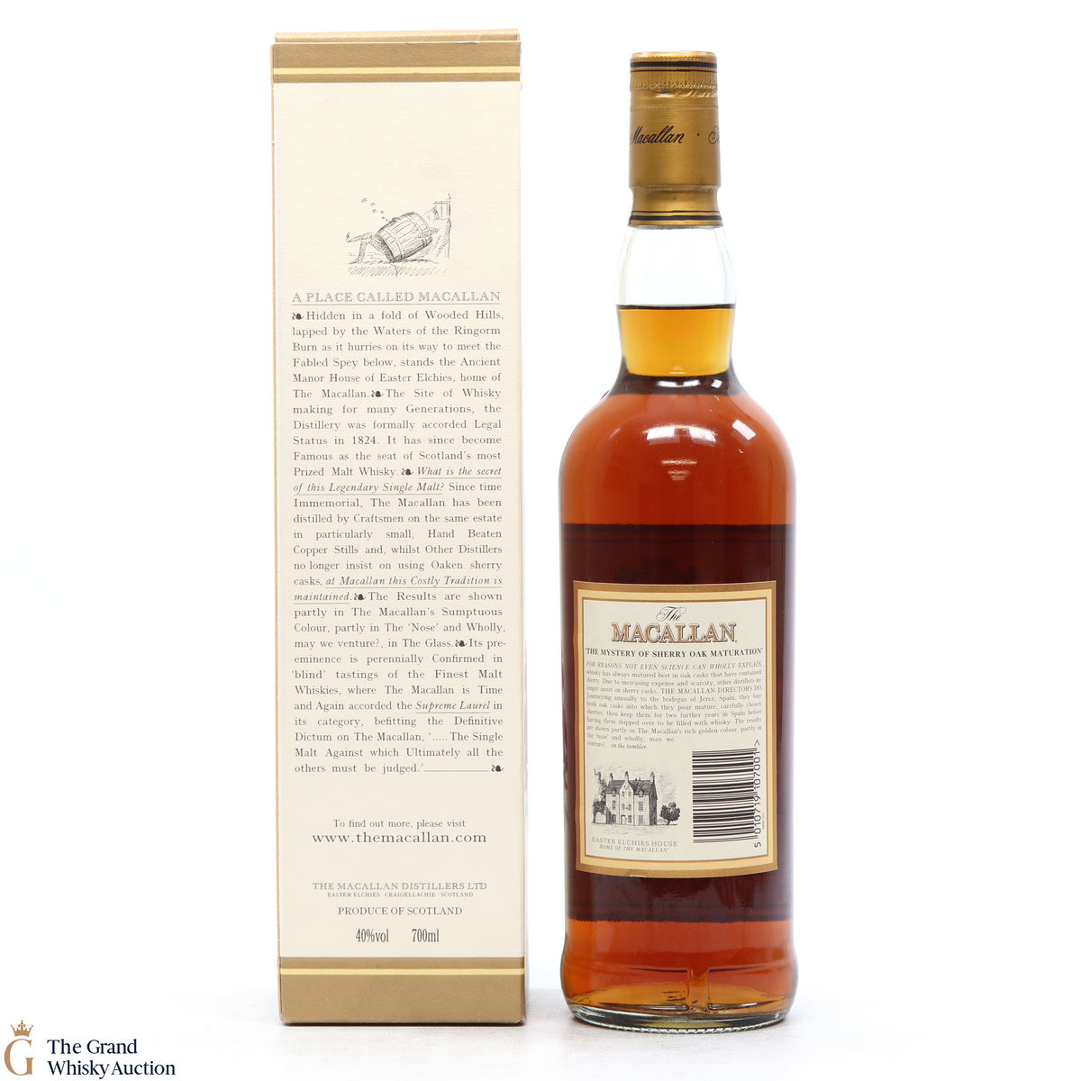 An old bottling of Macallan 10-year-old, which has been exclusively matured in sherry oak casks. Bottled in the early 2000's.
