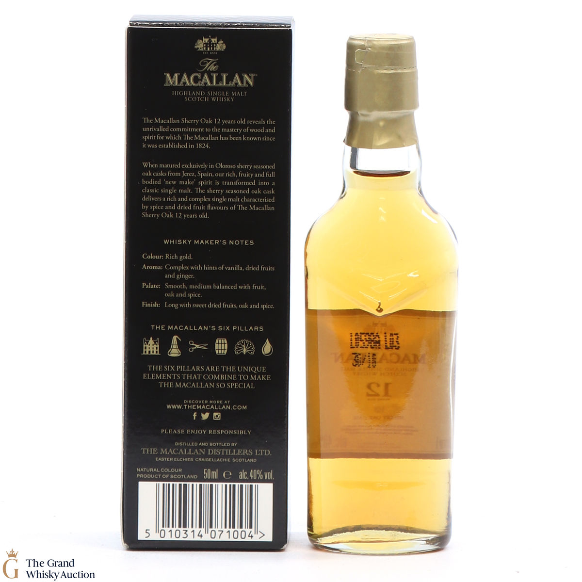 The Macallan Sherry Oak 12 Years Old 5cl miniature forms part of the Sherry Oak range which features a series of single malt whiskies matured exclusively in hand-picked sherry seasoned oak casks from Jerez for richness and complexity.