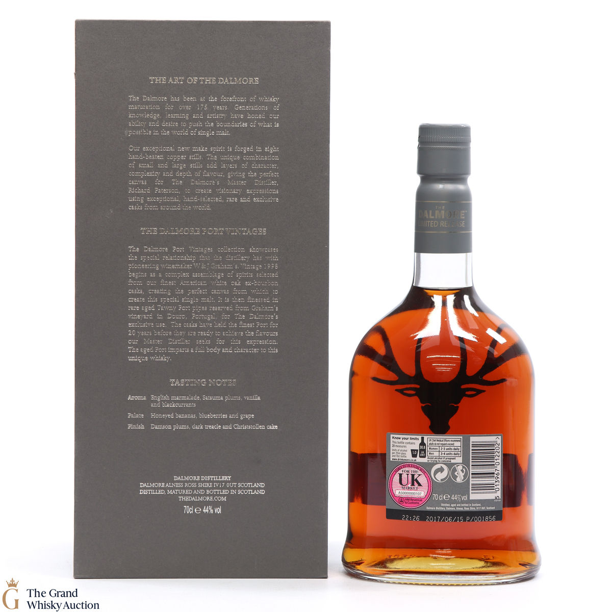 This release is from the Dalmore Port Vintages collection. Distilled in 1998 and matured for 18 years, including a finishing period in rare aged Tawny Port pipes. It showcases the relationship Dalmore has with winemaker W&J Graham's.