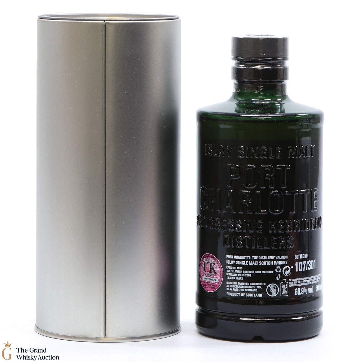 From Bruichladdich, this Port Charlotte Valinch single cask is a 13 year-old distilled in Islay in 2006, matured in 1st fill fresh bourbon barrel #1955. This is a distillery exclusive release of 301 bottles at 60.9% ABV. This is a 50cl bottling.