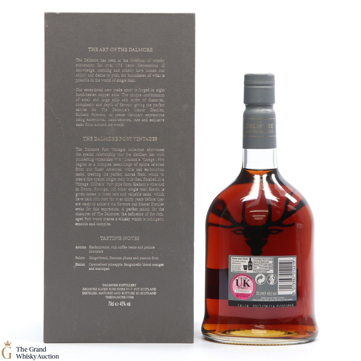 One of three vintage releases from Dalmore, matured with Port Pipe finishes. This 20-year-old 1996 vintage single malt was graced with a 3-year finishing period in specially selected Port pipes that had previously matured Graham's Colheita Port for 30 years.