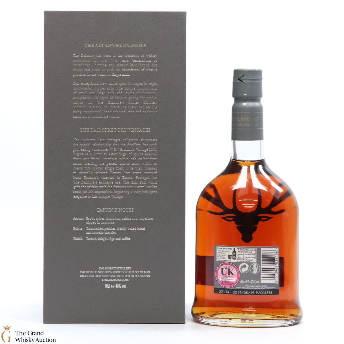 This release is from the Dalmore Port Vintages collection. Distilled in 2001 and matured for 15 years, including a finishing period in rare aged Tawny Port pipes. It showcases the relationship Dalmore has with winemaker W&J Graham's.
