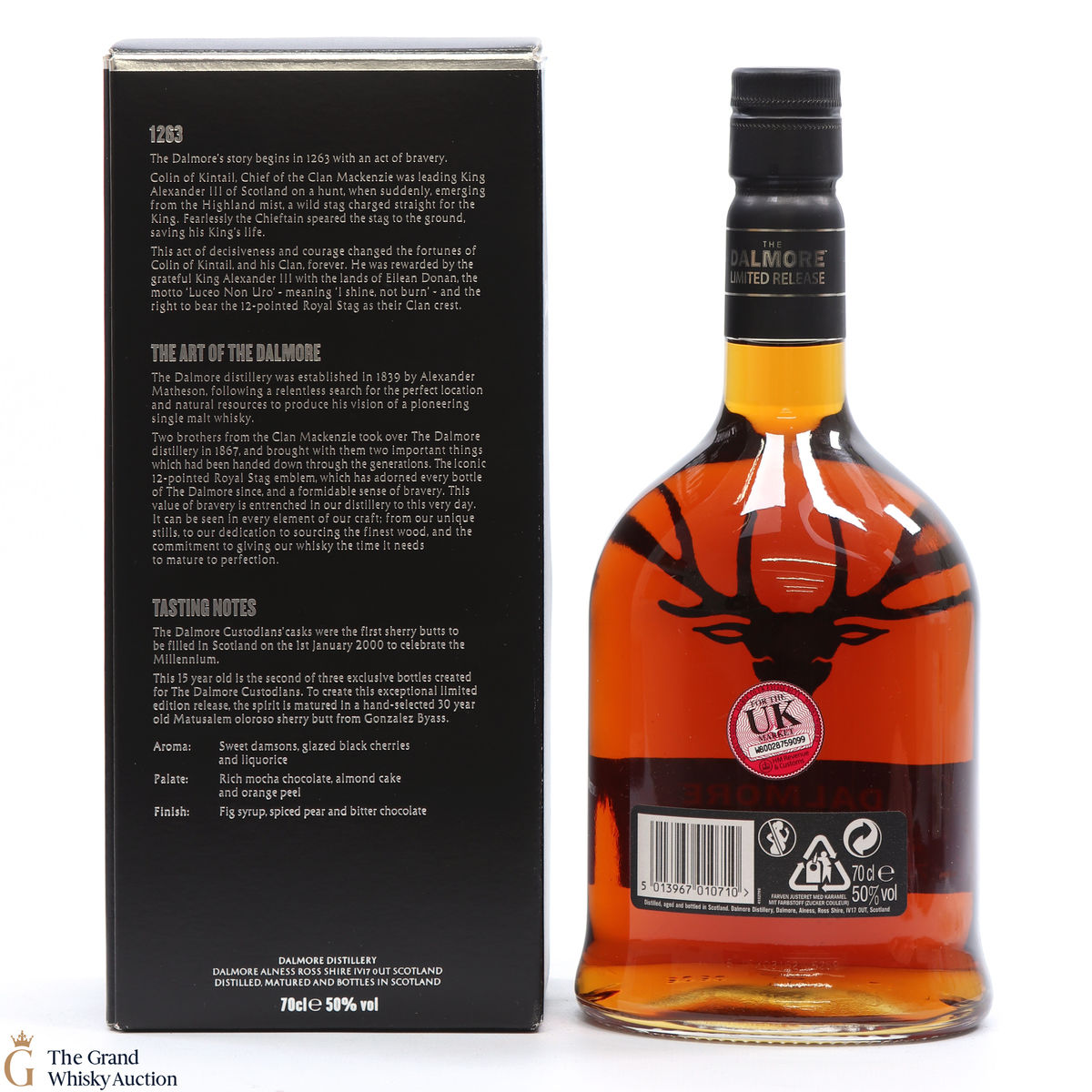 This bottle is a 2015 release of The Dalmore Custodian's casks were the first filled sherry butts to be filled in Scotland on the 1st January 2000 to celebrate the Millennium.