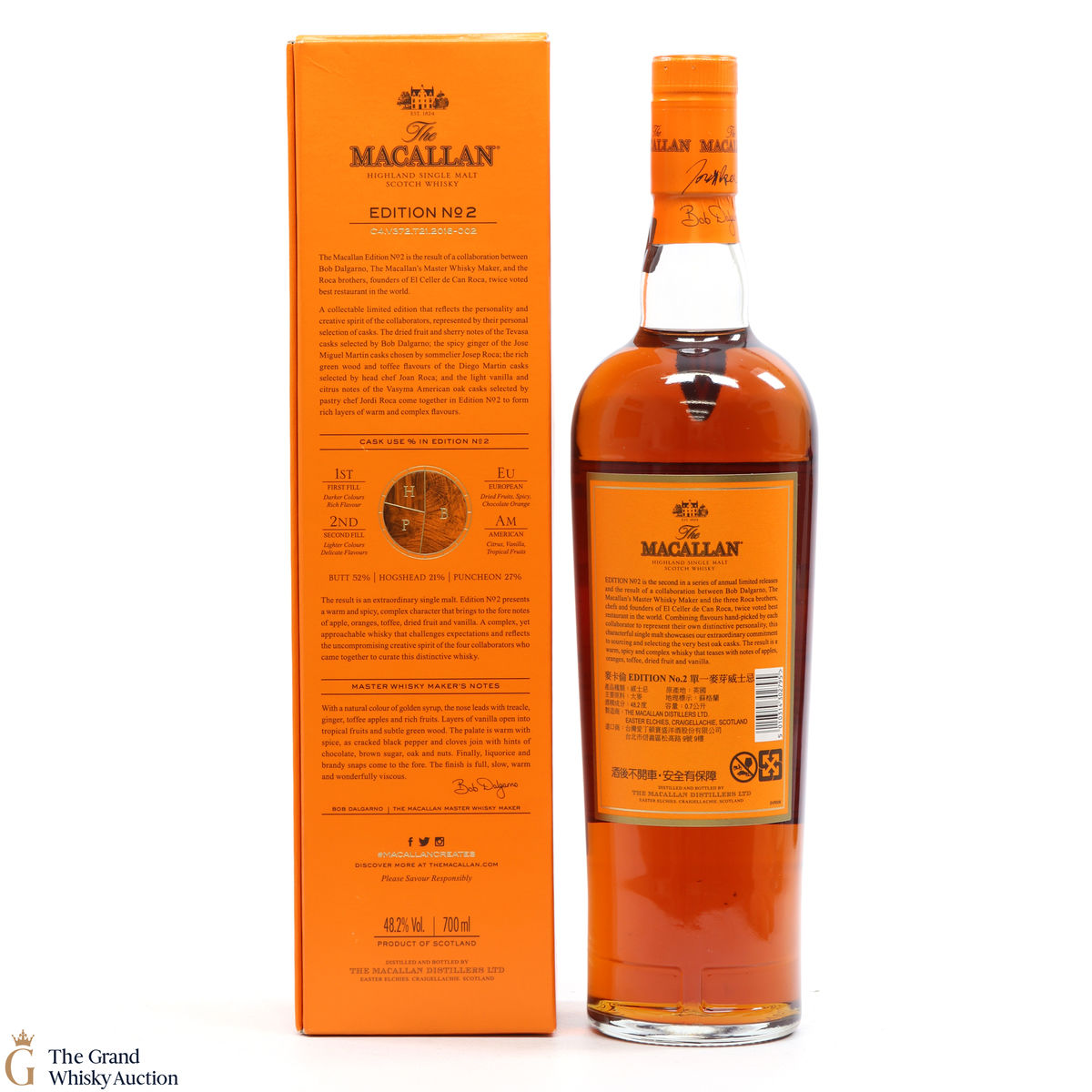 This is the second release from the Macallan Edition series. Edition No.2 is a collaboration between Macallan's master blender Bob Delgarno and legendary Spanish chefs Joan, Josep and Jordi Roca. The Rocas are the three brothers behind El Celler de Can Roca (named Best Restaurant in the World twice by Restaurant magazine). This single malt was drawn from a combination of sherry puncheons, butts and refill hogsheads.