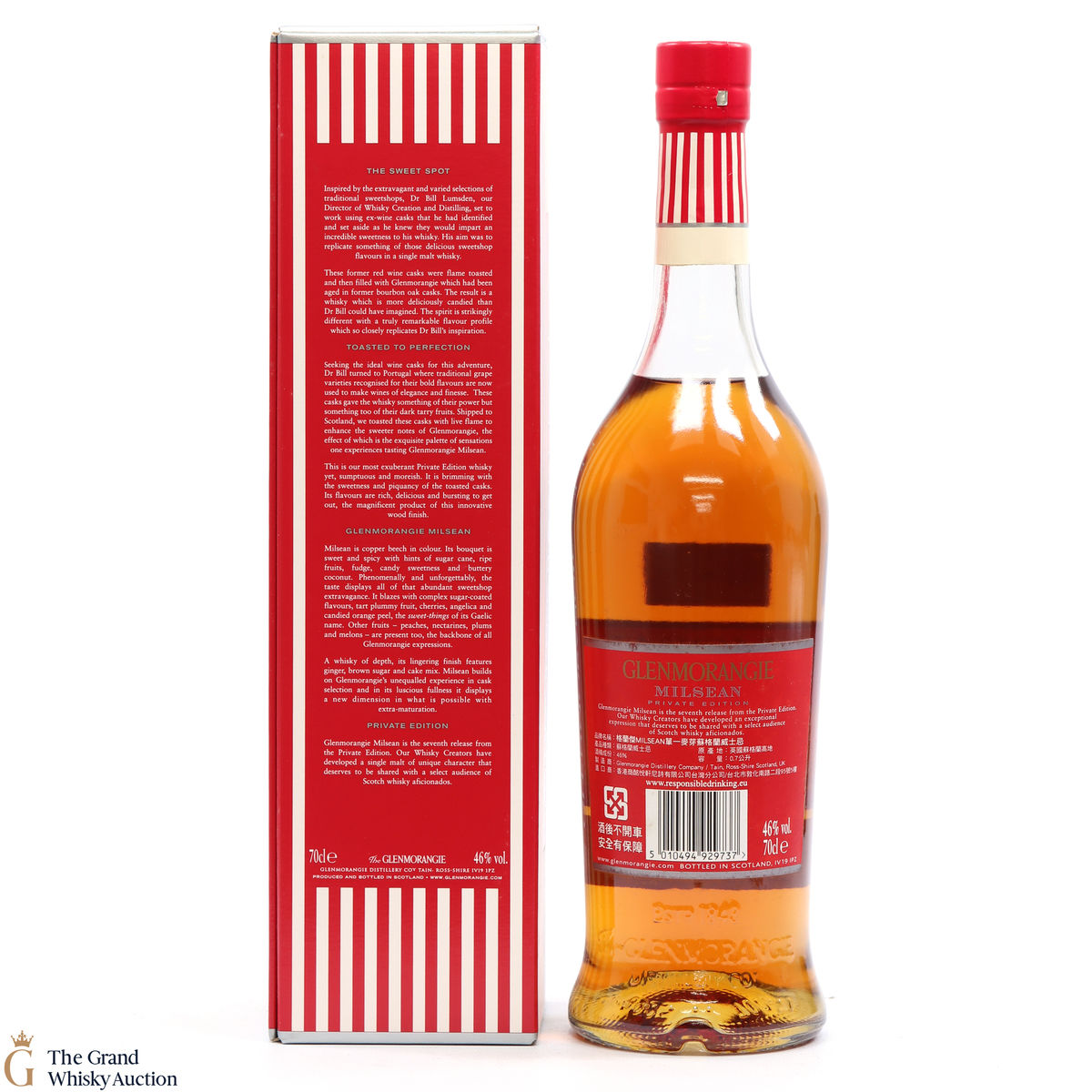 Milsean was the seventh release in Glenmorangie's Private Edition series. It was finished in two-and-a-half years in 154 toasted ex-Portuguese-red-wine barriques. This highland malt is sweet with notes of tropical fruit and lemon sherbet, backed up with some ginger spice.
