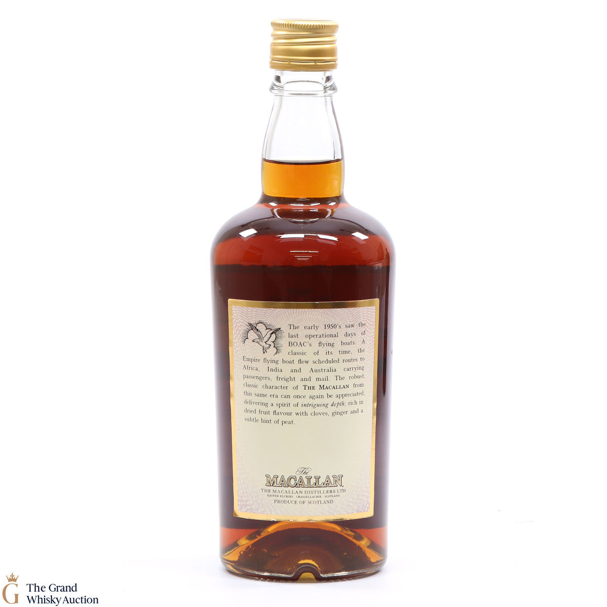 During the 1950s, Macallan whisky was as rich and spicy as modern-day Macallan, but with a hint of peat smoke. This was due to Spanish oak sherry casks becoming available again, following the disruption of the second world war. Macallan was ale to revert to using only first and second fill casks. 50cl, 40%.