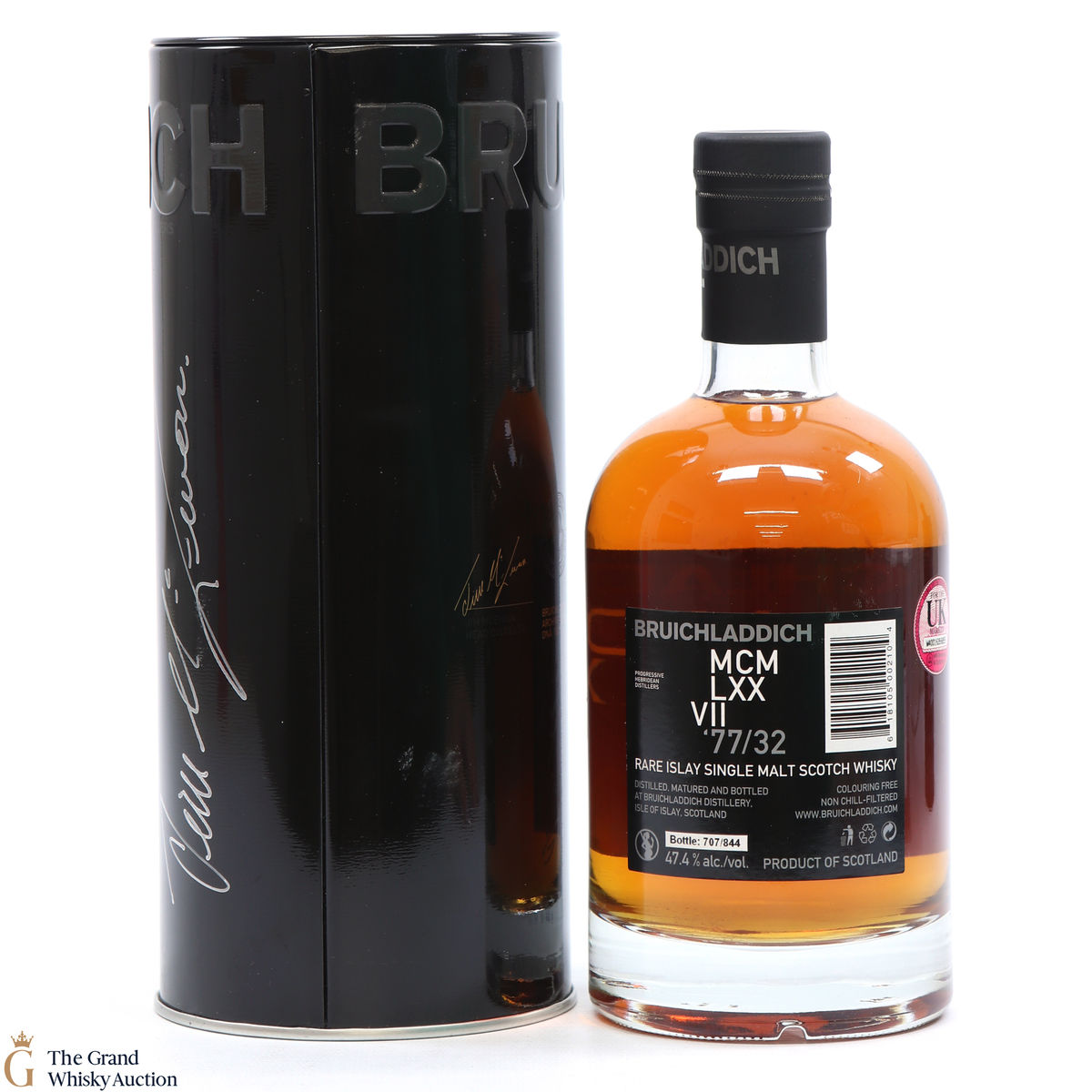 This limited release was made with specially selected casks of Bruichladdich 1977 vintage, the single malt had been aged 32 years when bottled. This release is the 2nd in the Bruichladdich DNA series. Only 844 were released. Bottled September 2010 at the cask strength of 47.4% ABV.