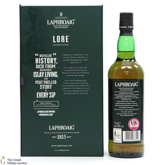 Laphroaig Lore is said to be the richest ever Laphroaig made from malt aged from 7 to 21 years. This edition was inspired and named after the skills passed down over the generations, this permanent addition to the range is matured in a combination of specially selected casks including first-fill Sherry butts and quarter casks.