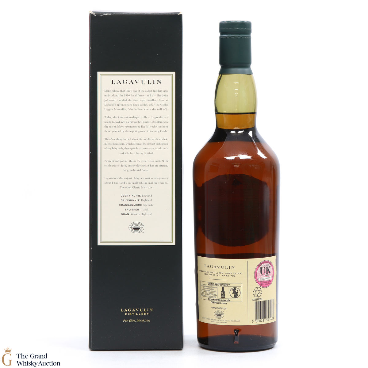 This is a popular and much sought-after single malt with the massive peat-smoke that's typical of southern Islay - but also offering richness and a dryness that turns it into a truly interesting tipple. The 16 year old, aged in oak casks has truly become a benchmark Islay dram from the Lagavulin distillery.