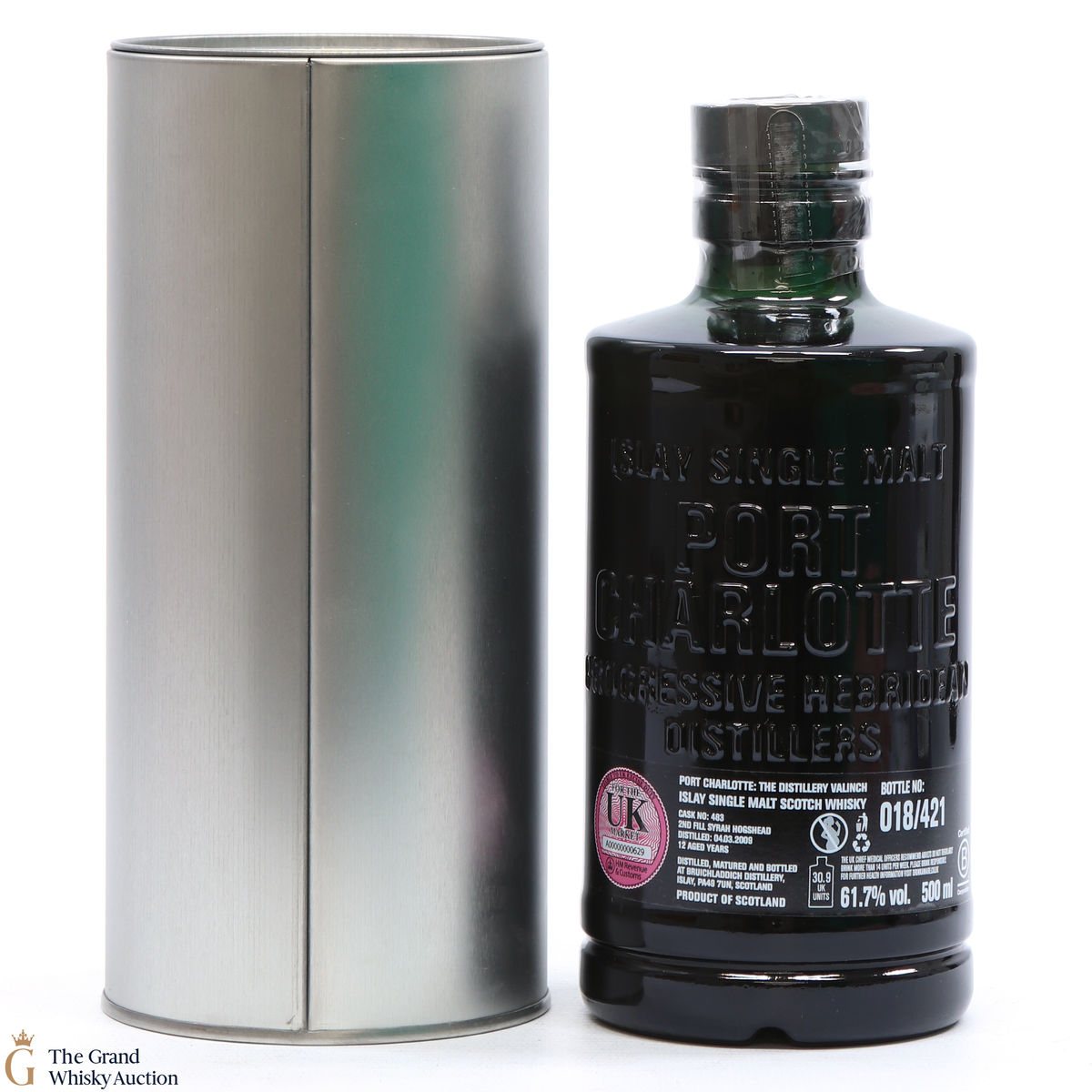 From Bruichladdich, this Port Charlotte Valinch single cask is a 12-year-old distilled in Islay in 2009, matured in 2nd fill Syrah cask #483. This is a distillery exclusive release of 421 bottles at 61.7% ABV. This is a 50cl bottling.