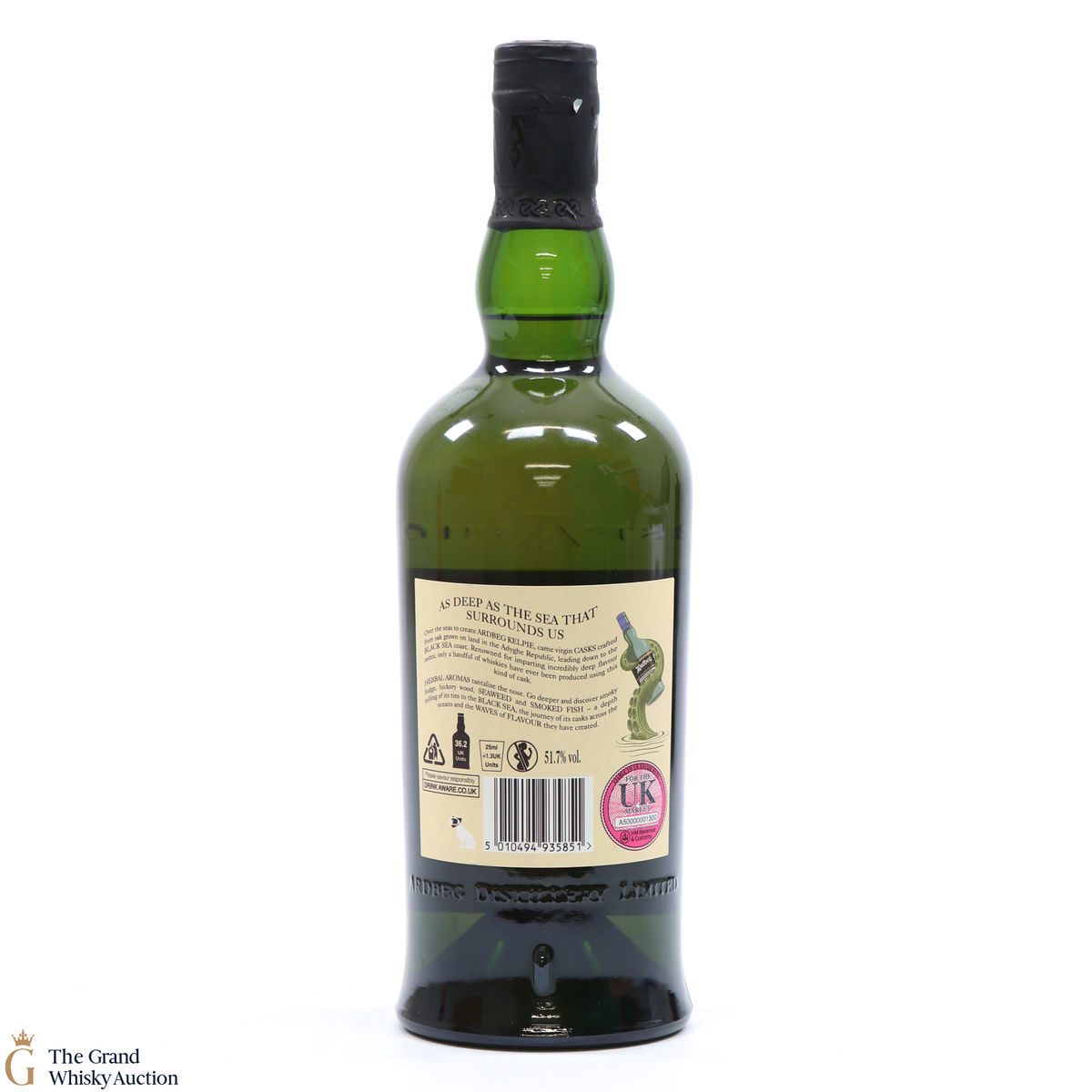 This is a committee exclusive release of the Ardbeg Kelpie, a single malt released in 2017. It was matured in casks made from virgin Black Sea oak and more traditional bourbon casks. The Committee Release is bottled at the higher strength of 51.7% ABV (while the standard Ardbeg Kelpie has bottled at 46% ABV).