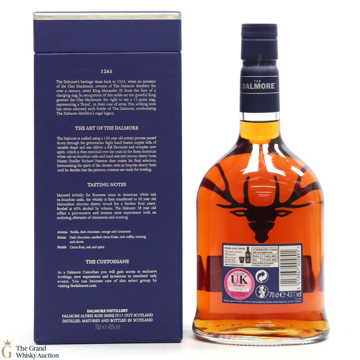 Dalmore’s trademark style is luscious notes of orange, chocolate and spices, and the 18 Year Old bottling is a terrific example. Aged in both bourbon and sherry casks, it has seductive notes of vanilla, dark chocolate and candied orange on the nose, followed by a full-bodied, spicy palate of cinnamon and stewed fruit.