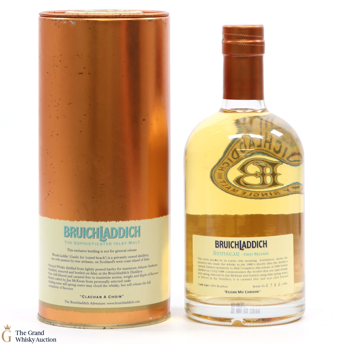 This special limited edition release from Bruichladdich that was bottled without an age statement at 50% ABV. It was distilled in 1988 and matured in 100% bourbon casks. 'Sinnsear' is Gaelic for 'Forefathers'. This is one of just 1,000 individually numbered bottles. This is a 50cl bottling.