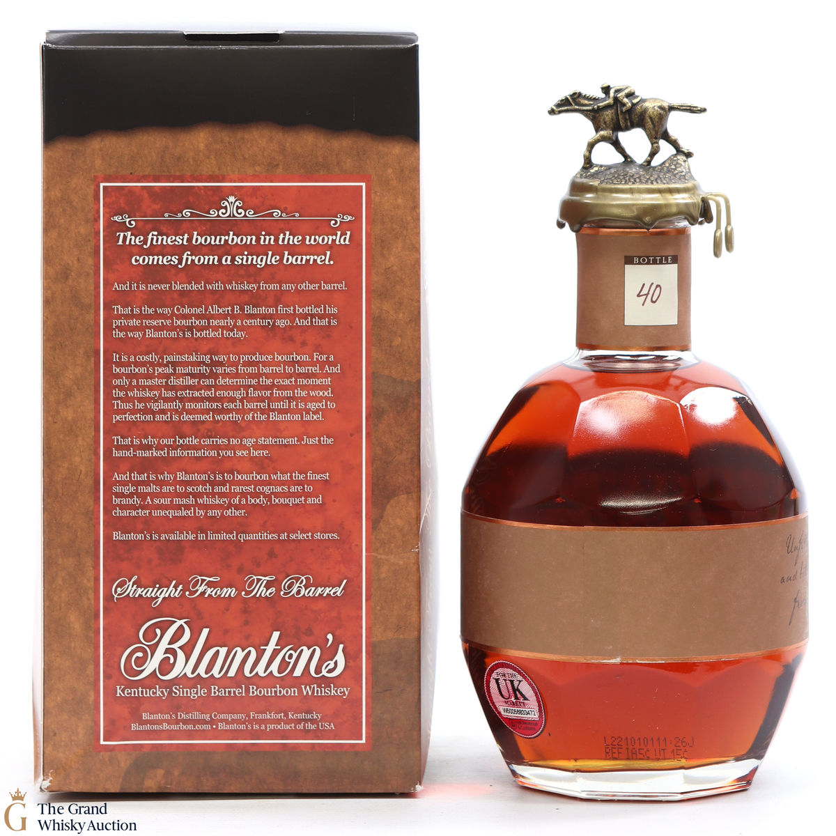 PLEASE NOTE: The wax seal on Blanton's bottles are prone to cracking in transit due to their design. Therefore, as stated in our T&C’s, we do not and will not accept liability should the seal be breached, broken, split or leak in transit. Additionally, please know due to the design of the internal cardboard packaging that surrounds the top of the bottles, it too may be torn. By bidding on this lot you have understood this to be true. Insurance is for complete breakage or loss in transit only.