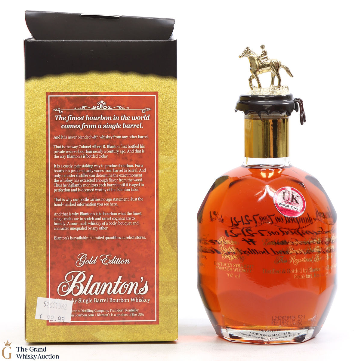PLEASE NOTE: The wax seal on Blanton's bottles are prone to cracking in transit due to their design. Therefore, as stated in our T&C’s, we do not and will not accept liability should the seal be breached, broken, split or leak in transit. Additionally, please know due to the design of the internal cardboard packaging that surrounds the top of the bottles, it too may be torn. By bidding on this lot you have understood this to be true. Insurance is for complete breakage or loss in transit only.