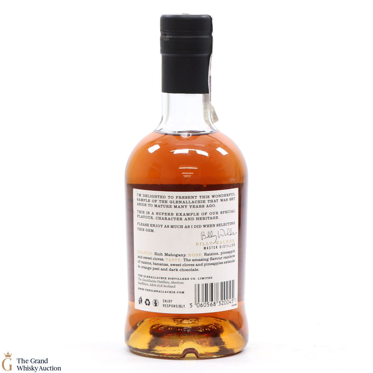 This special GlenAllachie 27-year-old single malt was released as part of their 50th Anniversary bottlings. Distilled 8th May 1990 and matured in sherry butt #2517 until February 2018 specially selected by Billy Walker. One of only 526 bottles filled at 54.6% vol.