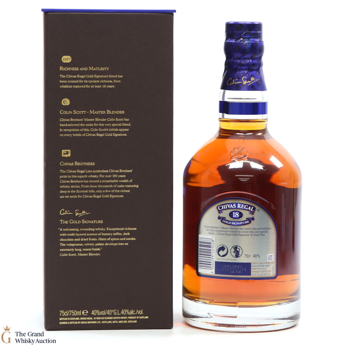 This is a 70cl bottling of Chivas Regal 18 Year Old Gold Signature. The packaging and bottling code indicate that it was bottled in 2010.