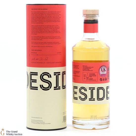 This is the Inaugural Release from The Clydeside Distillery, located on the banks of the River Clyde, Glasgow. Made from 100% Scottish barley and water sourced from Loch Katrine. Aged in American and European oak casks and bottled at 46% ABV.