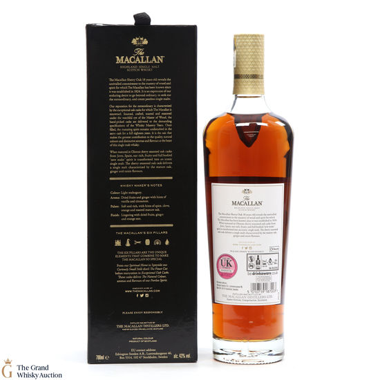 This annual release of The Macallan's popular 18 Year Old Sherry Oak is matured exclusively in sherry seasoned casks, built from both Spanish and American oak, providing a beautifully dark flavour with rich aromas.