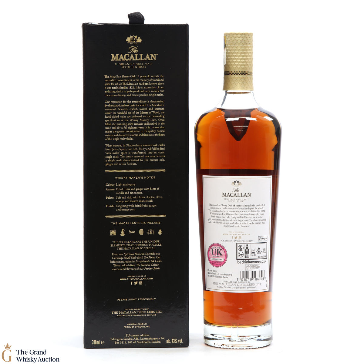 This annual release of The Macallan's popular 18 Year Old Sherry Oak is matured exclusively in sherry seasoned casks, built from both Spanish and American oak, providing a beautifully dark flavour with rich aromas.