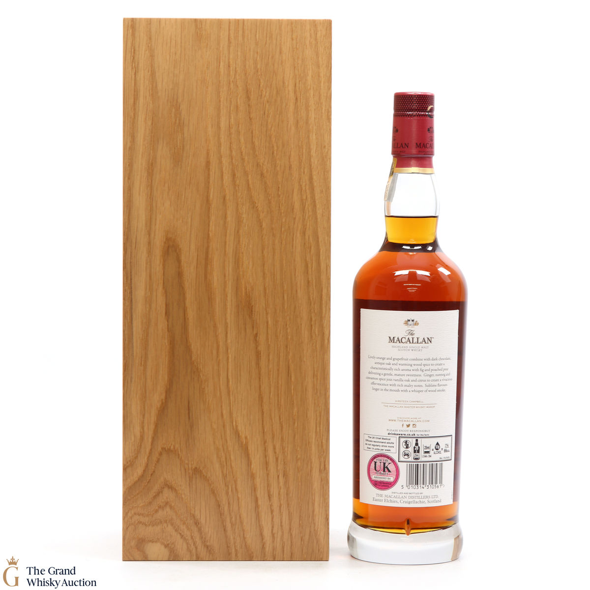 The Macallan Red Collection reflects Macallan's deep respect for time, tradition and craftsmanship and the entwinement of the colour through their history: Macallan Founder Alexander Reid—literally “The Red”; to The Macallan’s ‘Choice Old’ range released over a century ago in 1903; through to Allan Shiach marking vintage bottles of The Macallan with a red ribbon in the 1980s.