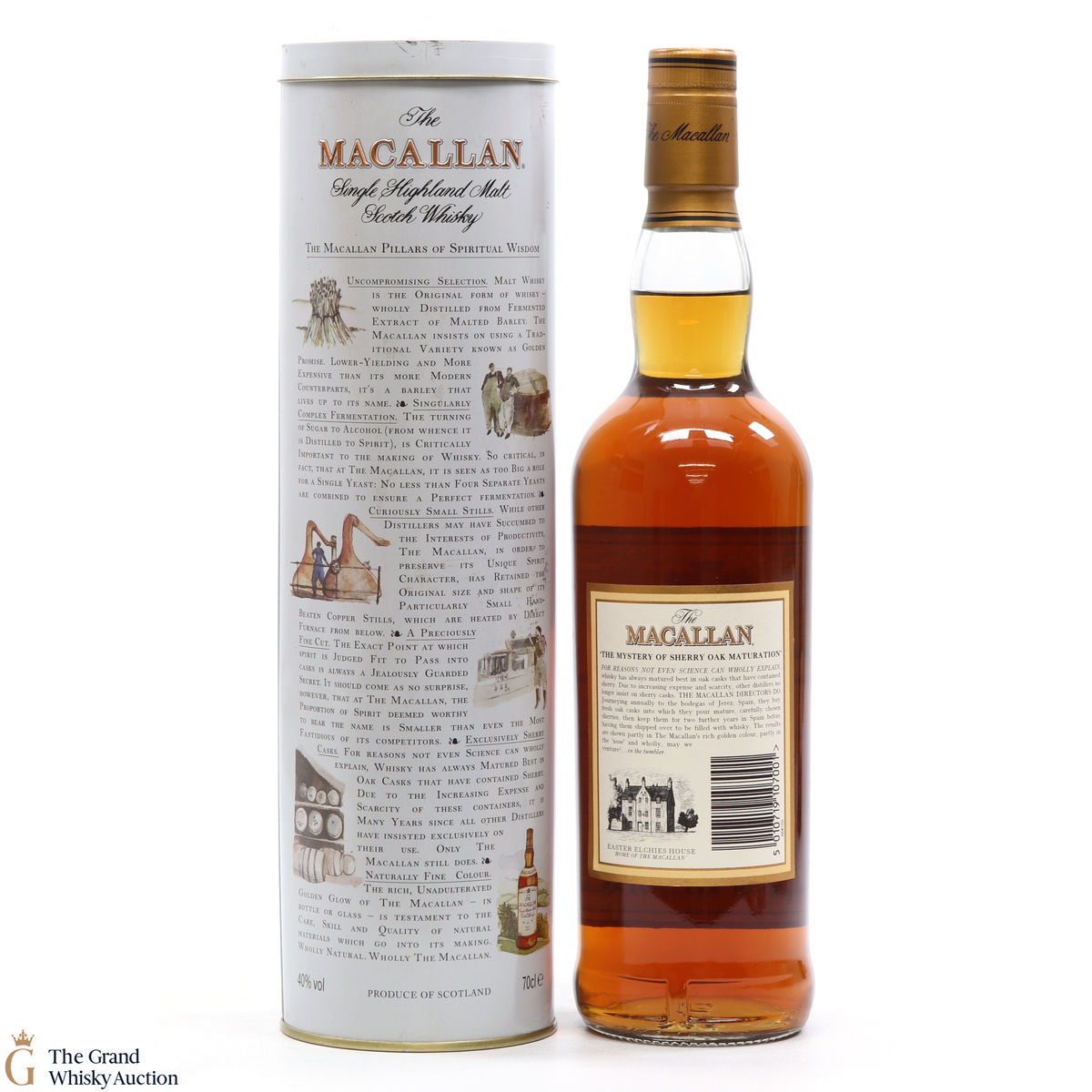 A 1990's bottling of 10 year old Macallan, matured in sherry wood with a presentation tin depicting Easter Elchies House.