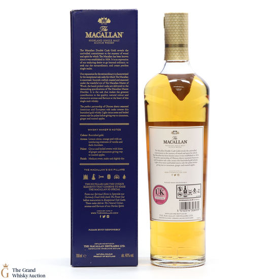 Macallan Gold was first introduced in 2012 as part of the distillery's 1824 range of non-age statement expressions, before being renamed Macallan Gold Double Cask in 2018 as part of the new core range. Matured in a combination of first fill and refill American oak and European oak sherry casks to create an incredibly smooth and rich single malt. Soft gold in colour, this is the lightest expression of the Macallan range, but still packed with typical Speyside Macallan flavours.